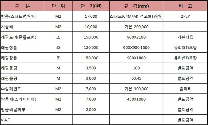 위 시공 단가표는 현장상황에 따라 달라질 수 있습니다.